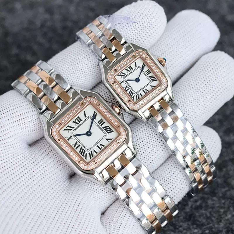 Le cadran carré, orné de chiffres romains et d’un contour magnifique, évoque un style classique revisité